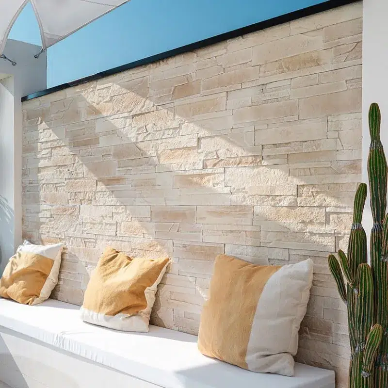Les plaques s’installent simplement par collage, rendant la mise en œuvre rapide et intuitive. Son assemblage de pierres longues aux reliefs doux, associé à des nuances de tons harmonieuses, s’adapte aussi bien aux décors traditionnels qu’aux architectures contemporaines. Teinté dans la masse, le parement Portland offre une excellente durabilité. Les fibres acryliques intégrées lui confèrent une résistance accrue aux chocs et aux variations de température, deux des grands avantages de la pierre reconstituée.