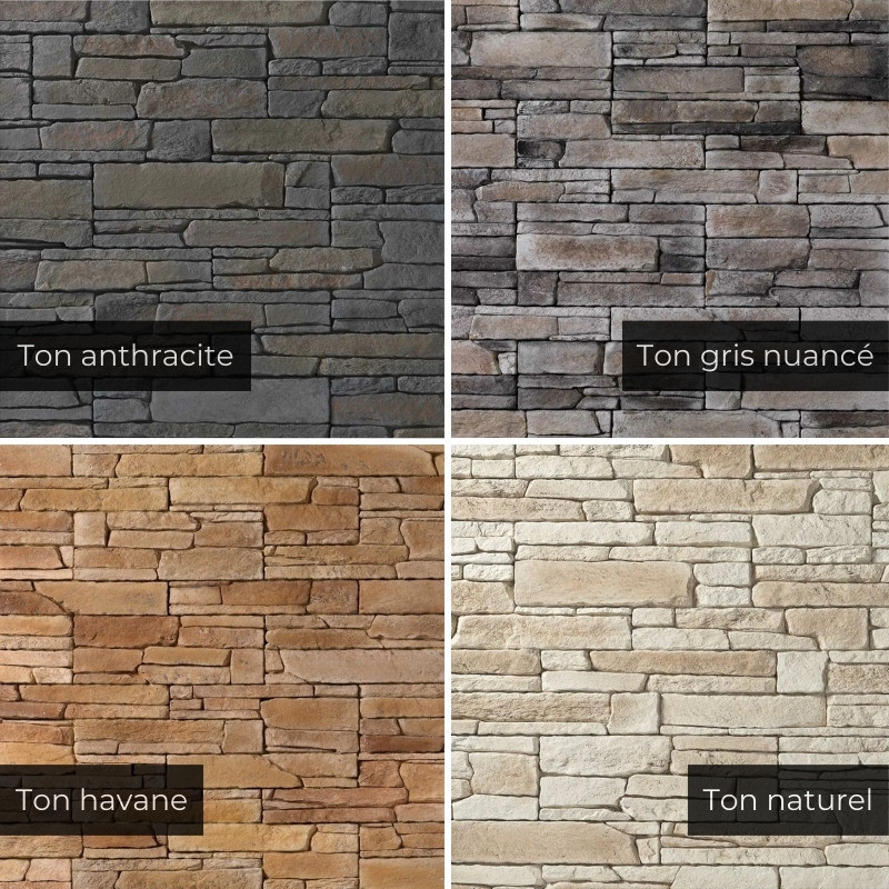 Le parement Rocky Mountain se compose de pierres rectangulaires déclinées en quatre dimensions, apportant une véritable identité visuelle à vos espaces. Principalement formées de barrettes pouvant se poser horizontalement, ces pierres s’empilent de manière légèrement irrégulière lors de la pose, créant un relief marqué et très naturel. Cet assemblage, alliant formes travaillées et aspect brut, permet d’obtenir un rendu à la fois moderne et authentique.