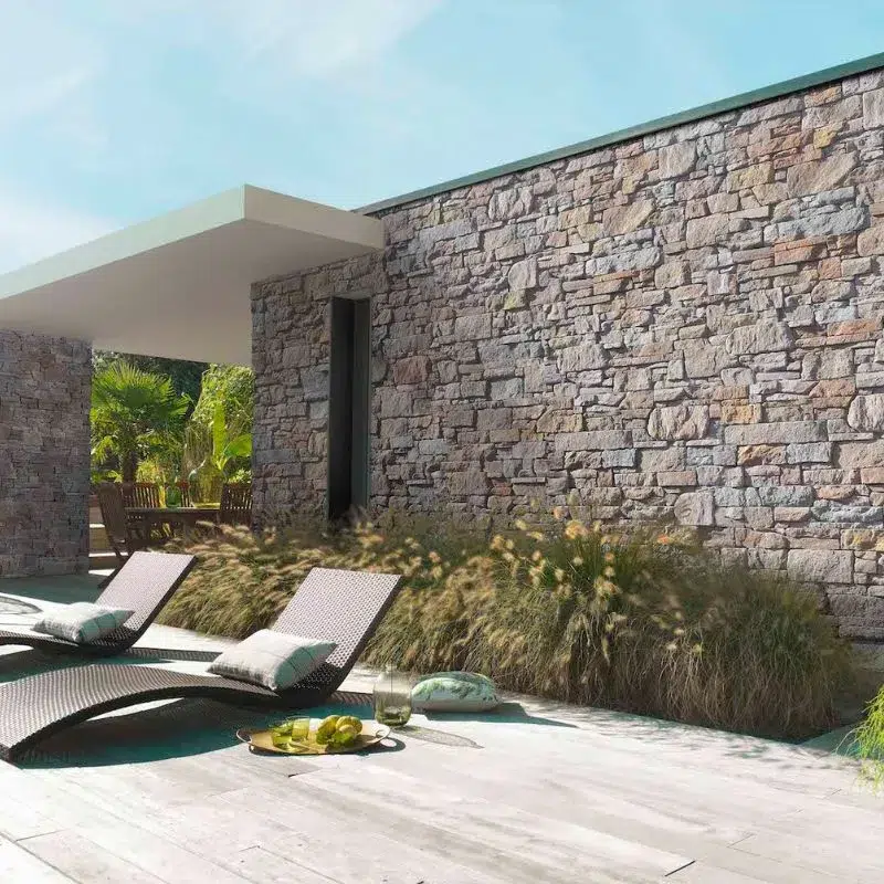 Son aspect pierre sèche légèrement vieilli, son grain fin et son relief doux s’intègrent parfaitement dans tout type d’environnement. Teinté dans la masse, ce parement bénéficie d’une excellente tenue dans le temps grâce à l’ajout de fibres acryliques. Comme tous les revêtements en pierre reconstituée, il offre une grande résistance aux chocs et aux variations de température, ce qui en fait un choix durable et fiable.