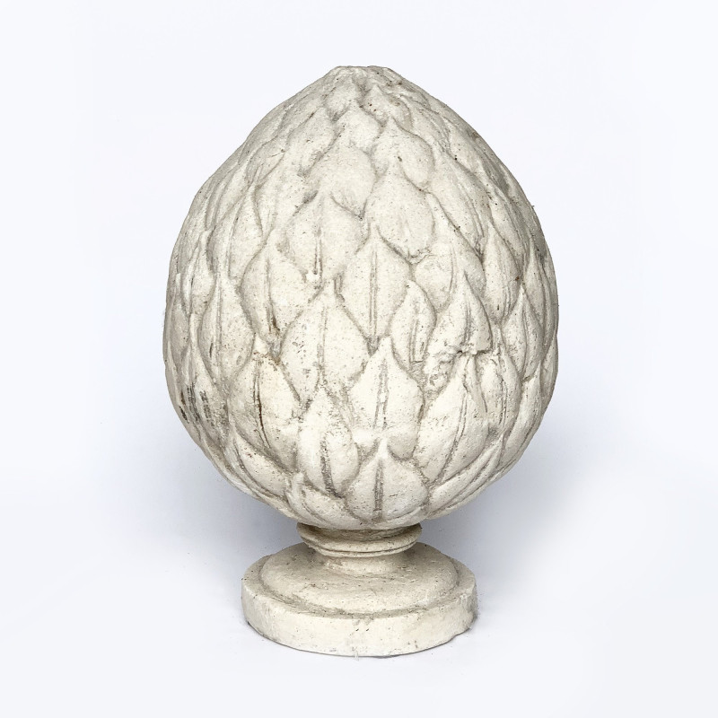 Envie d'une décoration qui change ? Grâce à cette pigne d'artichaut en résine patinée, c'est chose faite ! Aussi jolie qu'originale, cette pigne d'artichaut constitue un élément de décor original. Elle est constituée de résine. Les matériaux utilisés pour la réalisation de celle-ci sont la poudre de pierre et la poudre de marbre (à hauteur de 80%). Ensuite, le produit a été patiné pour lui donner cet aspect final si proche de la pierre naturelle, que ce soit au niveau de l'aspect ou du toucher.