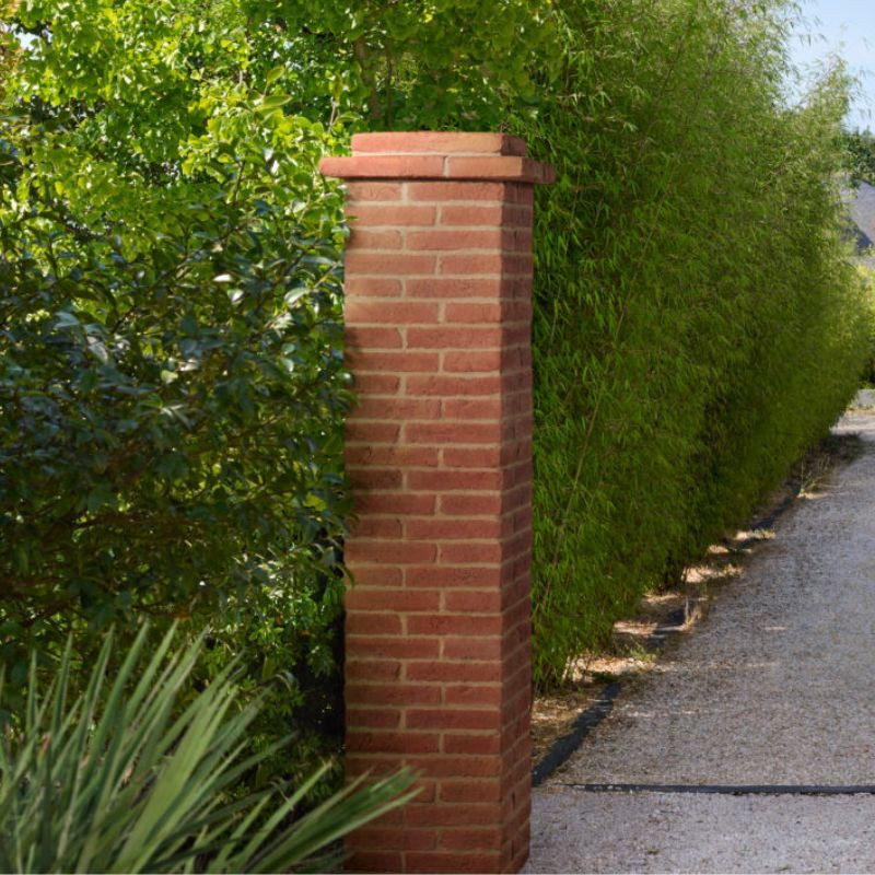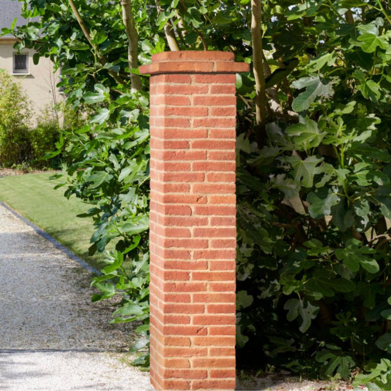 Choisissez ce pilier en pierre reconstituée au ton brique pour sublimer vos extérieurs, vendus par paire, ces piliers sont fabriqués en France.