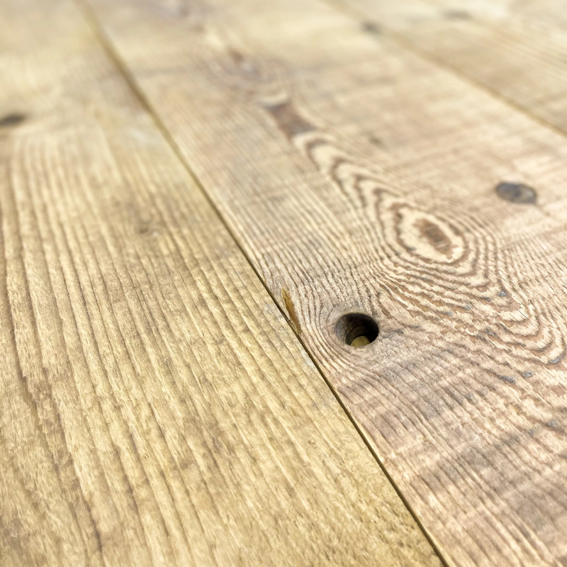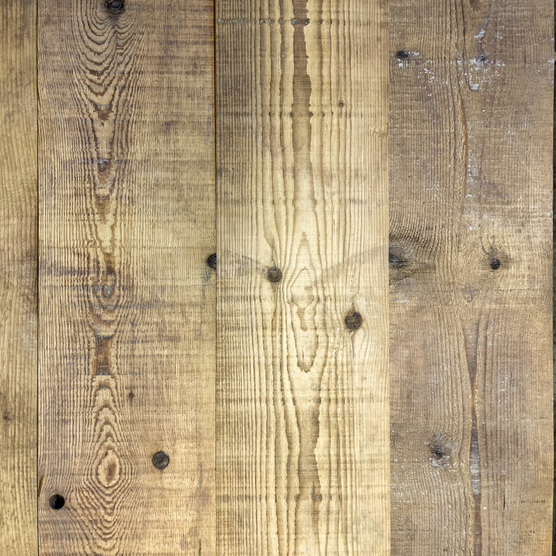 Soigneusement sélectionné, ce plancher à fromage en sapin massif est rainuré, poncé, brossé et prêt à poser. Ces planches d’une quinzaine d’années sont issues des fromageries de Savoie ou du Jura. Celles-ci servaient d'étagères sur lesquelles les fromages s'affinaient. D'une propreté permanente et durable, ces planches vous raviront pendant des années. Posez ce parquet au sol ou au mur dans une pièce de vie pour la rendre plus chaleureuse. Ce parquet vieux bois n’est pas conseillé dans les pièces d’eau. Apportez une touche rustique et élégante à vos sols, vos cloisons ou vos plafonds. Ce parquet en sapin massif peut être placé dans une maison neuve ou dans le cadre d'une rénovation sur sol existant. Faites entrer la beauté naturelle et le caractère dans votre maison grâce à ce plancher en sapin. Du plus, il s'agit d'un matériau écologiquement et durable. Et pour encore plus de choix avec le sapin, nous vous invitons à découvrir notre parquet industriel en sapin massif. Si vous voulez une vraie nouveauté et une réelle originalité, choisissez ce plancher à fromage prêt à poser. Découvrez aussi notre parquet haussmannien, notre plancher saloon et notre parquet ancien point de Hongrie.Les dimensions du plancher à fromage prêt à poser