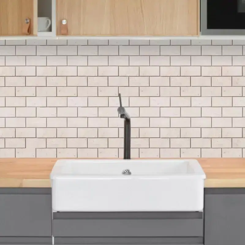résistance à l'humidité, cette mosaïque est parfaite pour les zones exposées à l'eau comme les salles de bain, les douches, les cuisines ou les terrasses. Le travertin light s'intègre parfaitement dans de nombreux styles de décoration, qu'il soit traditionnel ou moderne. La disposition des carreaux en grille permet de créer un rendu visuellement homogène et équilibré. Ces plaques de mosaïque peuvent également être assorties à des