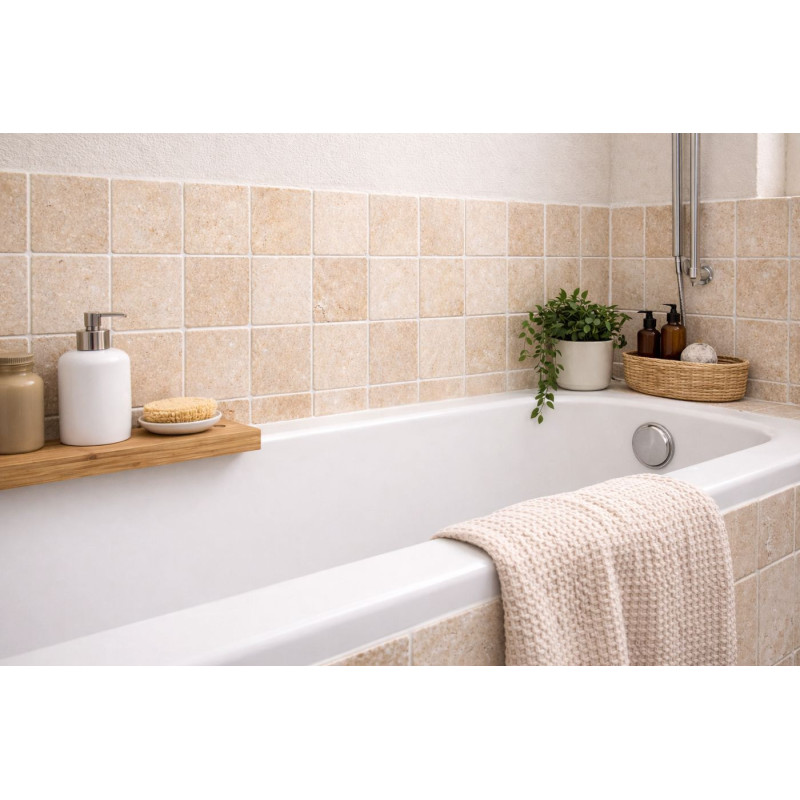 De plus, la texture légèrement rugueuse procure une sensation rustique tout en restant agréable au toucher. Grâce à sa forte résistance à l’humidité, la mosaïque en travertin mix convient particulièrement aux salles de bain, douches, cuisines ou terrasses. En effet, son design s’adapte facilement à différents styles décoratifs, qu’ils soient classiques ou contemporains. Ainsi, la disposition soignée des carreaux en grille crée un ensemble visuellement harmonieux.