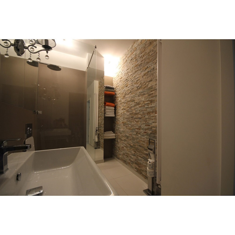 colle spéciale pour pierre naturelle sur une surface propre et sèche. Positionnez les plaques avec soin en suivant un alignement précis. Grâce à leur format modulaire, la pose est rapide et sans difficulté majeure. Pour protéger vos plaquettes contre les infiltrations et les taches, un traitement
