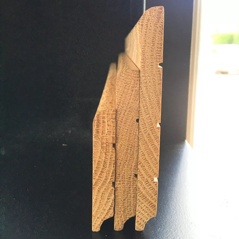 Le chêne est un bois noble de qualité, sa densité fait de lui un bois premium qui confère un aspect authentique à vos murs. Cette sélection de plinthes en chêne massif dispose de bords arrondis. Elles sont particulièrement adaptées au parquet massif en chêne, et apporteront une harmonie parfaite dans la pièce que vous désirez habiller. Les joints de dilatation du sol seront masqués grâce à ces plinthes en chêne massif. La finition de votre sol sera parfaite, vous pouvez aussi si vous le désirez, peindre vos plinthes. Il vous est tout aussi possible d'utiliser ces plinthes avec un dallage en pierre, afin d'apporter un contraste de matière intéressant et très apprécié. Elles sont conçues pour être facilement posées en appliquant uniformément de la colle en vague à l'arrière de la plinthe et ce grâce aux trois interstices prévues pour la bonne répartition de celle-ci.Quelles sont les dimensions de ces plinthes ?