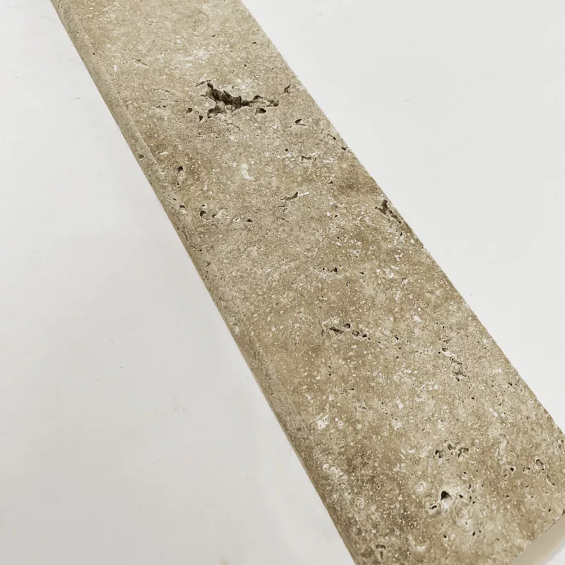 Le travertin est une pierre naturelle durable et intemporelle. Grâce à sa solidité et à sa résistance au gel, vous pouvez poser ces plinthes aussi bien en intérieur qu’en extérieur.