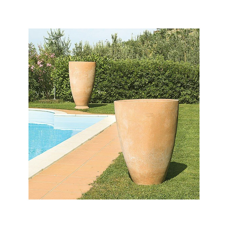 Fabriqué à Impruneta en Toscane, non loin de Florence, ce pot en terre cuite est réalisé entièrement à la main selon un savoir-faire artisanal propre à cette région de l'Italie. Très reconnues pour leurs propriétés non gélives, les terres d'Impruneta travaillées par l'artisan Poggi Ugo en font un produit d'une robustesse unique pour une terre cuite. Ce vase peut supporter des gels allant jusqu'à -30°C. L'argile isole thermiquement la terre, lui permet de respirer et conserve une légère humidité ce qui permet de conserver les racines des plantes en bonne santé.