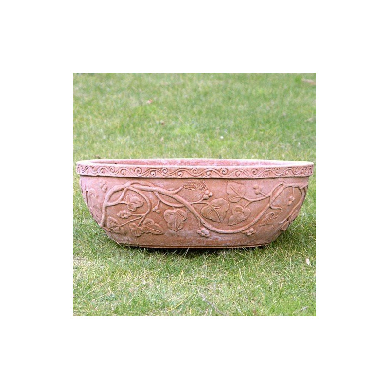 Ce vase possède des décors de feuilles de lierre et des baies se balançant horizontalement en relief sur toute sa surface. Ce décor délicat apportera un aspect chaleureux et sobre à vos aménagements. Ce vase peut être disposé à l'intérieur ou à l'extérieur. Ce pot classique peut accueillir tous types de fleurs mais peut aussi être exposé en décoration sur une colonne. Nous vous proposons ce vase en une dimension :