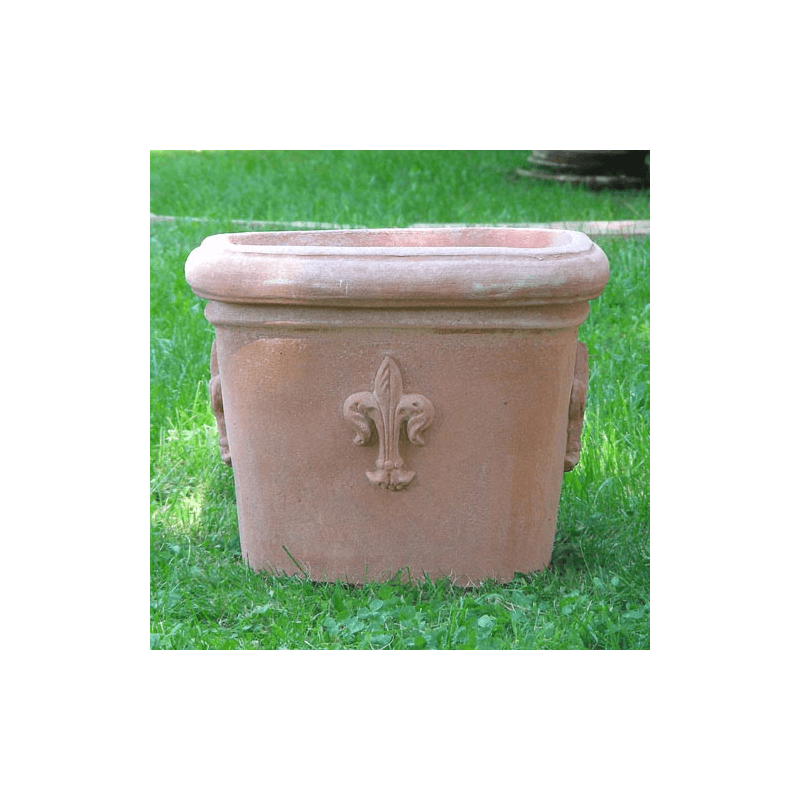 Grâce à ses nombreuses dimensions et sa très bonne qualité ce vase en terre cuite à tout pour répondre à vos besoins. Créé en Italie par des artisans, ce vase artisanal est réalisé à la main. Son argile d'Impruneta rend ce pot résistant au vent et aux basses températures jusqu'à -30 °C. Vous pourrez ainsi le laisser en extérieur en toute sécurité ! Ce pot est original par sa forme carrée mais aussi par ses fleurs de lys qui décorent ses quatre faces. Ses dimensions peuvent vous permettre d'y exposer des fleurs, de vous en servir comme pot de table ou encore de planter un petit arbuste. Ce pot en terre cuite sera parfait dans une décoration classique et sobre ! Ce vase est disponible en plusieurs dimensions :