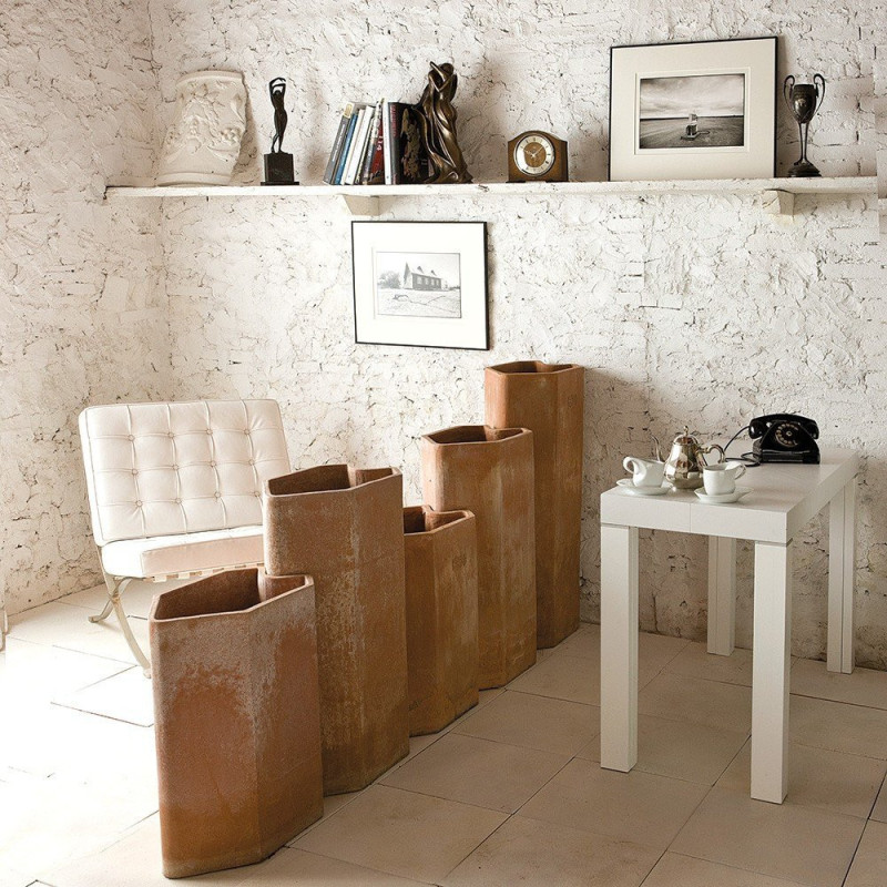 Vous souhaitez acquérir un vase original qui fera son effet ? Le vase Muretto sera parfait ! Ces vases sont réalisés à la main par des artisans italiens dans la région d'Impruneta. La terre cuite utilisée pour ces pots est anti-gélive et résistante aux variations de température. Assemblez ce vase sous toutes ses dimensions et créez une composition originale et élégante. Vous pourrez les exposer dans une pièce en tant que décoration, pot de fleurs ou encore pour séparer un espace. Libre à vous de décider l'utilité de ce pot en terre cuite ! La forme de ce vase est très originale et sublimera parfaitement un intérieur moderne. Le pot Muretto est disponible sous plusieurs dimensions :