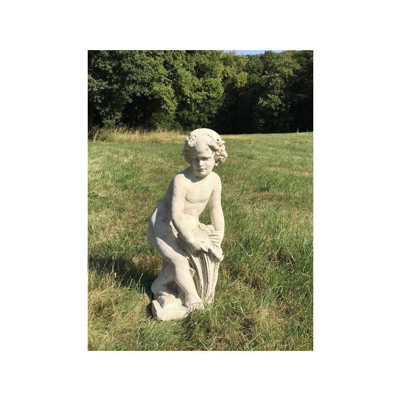 Laissez-vous attendrir par cette magnifique statue de putto en résine patinée. Cette statue représente un putto, un angelot/chérubin nu et souvent ailé (même si ce n'est pas le cas de cette statue), souvent considéré comme "joufflu et moqueur". Elle est inspirée d'un modèle très classique de la fin du XVIIème siècle et du début du XVIIIème siècle. C'est Louis XIV qui favorisa l'essort de ce types de sujets mettant en valeur l'enfance. Cette statue d'ornement pour le jardin s'adapte à bien des situation : elle peut aussi bien être mise en évidence sur un socle que positionée discretement dans un massif végétal, à même le sol. Vous pourrez exposer cette statue dehors durant toute l'année, puisqu'elle ne craint pas