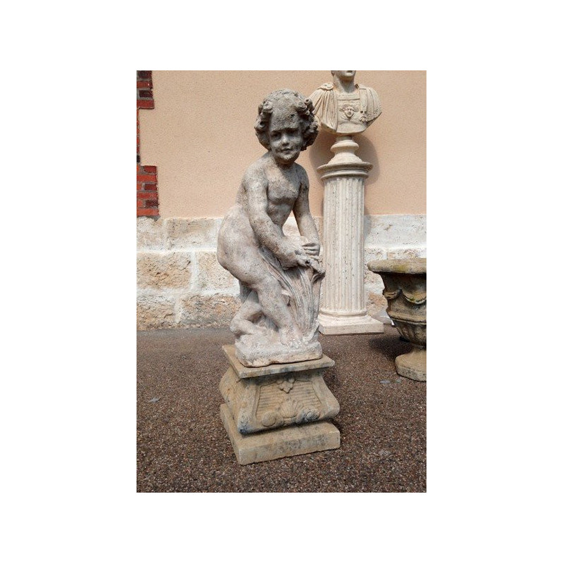 Laissez-vous attendrir par cette magnifique statue de putto en résine patinée. Cette statue représente un putto, un angelot/chérubin nu et souvent ailé (même si ce n'est pas le cas de cette statue), souvent considéré comme "joufflu et moqueur". Elle est inspirée d'un modèle très classique de la fin du XVIIème siècle et du début du XVIIIème siècle. C'est Louis XIV qui favorisa l'essort de ce types de sujets mettant en valeur l'enfance. Cette statue d'ornement pour le jardin s'adapte à bien des situation : elle peut aussi bien être mise en évidence sur un socle que positionée discretement dans un massif végétal, à même le sol. Vous pourrez exposer cette statue dehors durant toute l'année, puisqu'elle ne craint pas le gel. Ce putto est constitué de résine patinée dans les tons pierre. Le matériau qui est employée pour réaliser ce produit est composée à 80% de poudre de pierre et de poudre de marbre. Cela lui confère un authentique aspect de pierre naturelle. L'aspect ancien "bluffant" de ce produit est obtenu par un patinage soigneux du sujet après son démoulage. Ainsi, on a l'impression que la statue est là depuis de nombreuses années, alors qu'il n'en est rien. Cette statue apportera innocence et prestige à votre extérieur. Les dimensions de putto à la gerbe de blé sont de 75 cm de hauteur pour une base de 30 x 54 cm.