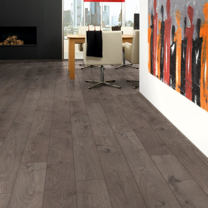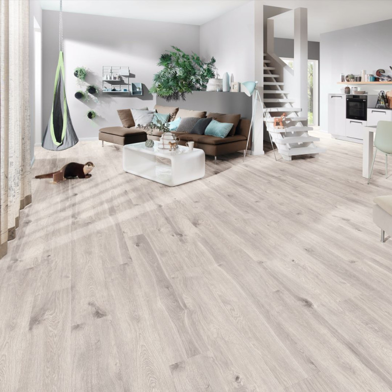 Le stratifié apporte de nombreux avantages de par sa composition et son rendu esthétique. La couche d'âme en fibre de bois, apporte la densité et de ce fait le confort acoustiques et l'isolation. La couche d’usure, quant à elle, est composée de cellulose spéciale imprégnée de résine, ce qui confère au stratifié sa robustesse et cet effet visuel ressemblant à si méprendre à celui du chêne. Ce revêtement de sol stratifié de 7 mm est idéal pour les pièces à faible et moyen trafic, apportant une solution économique et élégante pour les salons, chambres, couloirs et bureaux. En raison de son faible profil (7mm), il peut être une excellente option pour la rénovation, car il peut souvent être installé sans avoir à ajuster les portes ou les seuils existants. Avec son système de pose clipsé, ce revêtement de sol stratifié effet bois 7 mm d'épaisseur s'installe en toute simplicité et rapidement. Si vous souhaitez un sol stratifié avec une épaisseur plus importante, nous vous proposons le sol stratifié 8 mm aspect bois ou encore le sol stratifié 10 mm imitation bois .Les variations disponibles pour ce sol stratifié effet bois