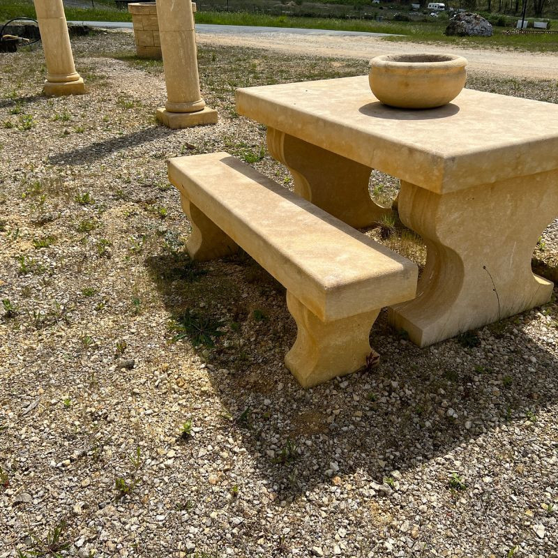 Le mobilier en pierre est idéal pour un jardin. Une table de jardin en pierre naturelle est l'incarnation de l'élégance et de la durabilité. Fabriquée à partir de pierre naturelle de haute qualité, cette table ajoute une touche raffinée et intemporelle à votre espace de vie. Que ce soit pour votre salle à manger ou votre jardin, la table en pierre naturelle offre à la fois fonctionnalité et esthétisme, créant un point focal attrayant dans n'importe quel environnement. Notre table de jardin en pierre tradition est faite en pierre de Mauzens. Celle-ci est réputée comme être l'une des plus belles pierres naturelles de Dordogne, se distinguant par sa couleur jaune paille et son grain fin. Elle est largement appréciée en tant que pierre de taille, et son utilisation remonte au 18ème siècle dans la construction de divers monuments tels que des châteaux, des viaducs, des bâtiments administratifs et des maisons bourgeoises. Chaque table en pierre naturelle est unique, avec des motifs, des veines et des variations de couleur distinctifs qui en font une pièce d'art à part entière. Pour une plus grande harmonie ; vous pourrez l'associer à notre banc de jardin en pierre tradition.Qu'est-ce que la pierre de Mauzens ?