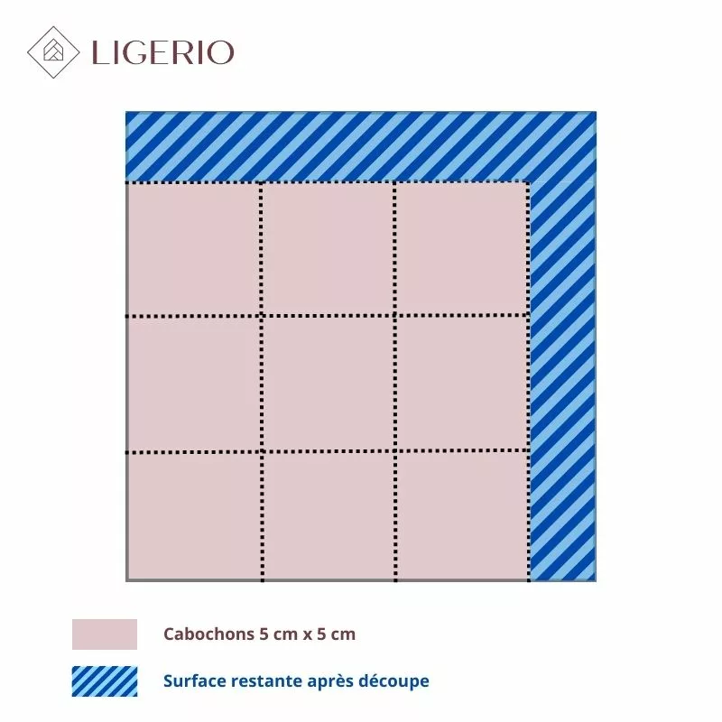 Une tomette carrée permet de créer 9 cabochons. De plus, nous prévoyons une marge de sécurité pour anticiper toute casse éventuelle.