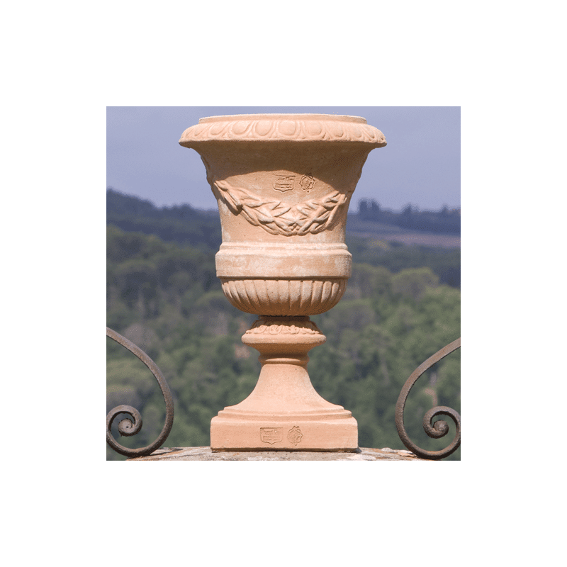 Amateurs de meubles et vases décoratifs, ce vase est un accessoire indispensable pour réussir votre aménagement intérieur ou extérieur. Ce vase, entièrement fabriqué en terre d'Impruneta, se démarque de tous les autres modèles classiques par sa forme particulièrement élégante et sa taille imposante. Le design très esthétique de ce vase permet d’orner un grand jardin en extérieur.