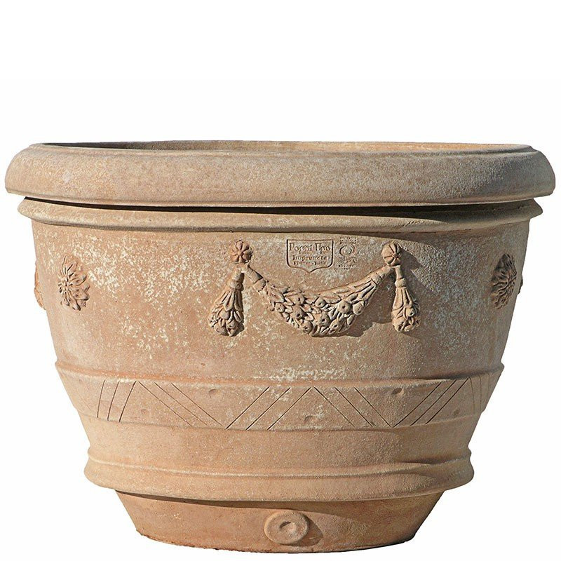 Poggi Ugo conçoit ce vase de manière artisanale en Toscane. Ils utilisent de la terre d'Impruneta qui est réputée pour résister aux températures extrêmes dans les deux sens. Elle peut résister au gel jusqu'à -30°C, elle est d'une grande durabilité et reste inaltéré avec le temps.