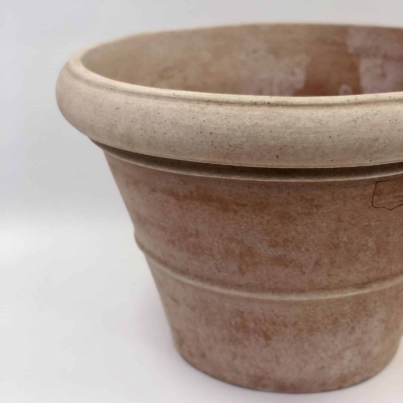 Agrémentez votre extérieur avec ce vase à la fois sobre, élégant, robuste et véritablement authentique ! Ce produit a été fabriqué à la main selon un procédé artisanal et local originaire d'Italie, plus précisément d'Impruneta, dans la région de Florence en Toscane. Cette origine est la garantie d'une qualité exceptionnelle. C'est Poggi Ugo, un artisan reconnu, qui est le fabriquant de ces vases. Pour cela, celui-ci utilise de la terre cuite d'Impruneta, reconnue pour ses nombreuses propriétés. Entre autres, elle ne gèle pas avant -30°C : vous pourrez donc laissez votre vase à l'extérieur sans craindre le gel ni les trop fortes températures. En effet, cette argile permet également d'isoler thermiquement la terre pour lui permettre de respirer et de rester humide en toute circonstance. Ainsi, les racines de vos plantes sont protégées peu importe la saison ! Ce vase, par son design à la fois sobre, classique et élégant, mettra en valeur n'importe quel type de plante. Celui-ci ajoutera une touche d'authenticité à votre extérieur grâce à sa couleur naturelle. Il est d'une robustesse hors du commun.