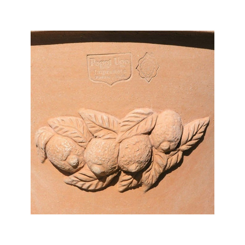 Cette élégante poterie italienne est fabriquée en Toscane dans le respect d’un savoir faire artisanal séculaire. Son décor représentant des camélias et des citrons est très fin et apportera une touche méditerranéenne à votre jardin, terrasse ou balcon ! Très typique des décorations extérieures italiennes, ce pot en terre cuite de la maison Poggi Ugo est garanti contre le gel jusqu’à -30°C. Il faut cependant que le vase soit bien drainé et que l’eau n’y stagne pas. Une couche de caillou ou de billes