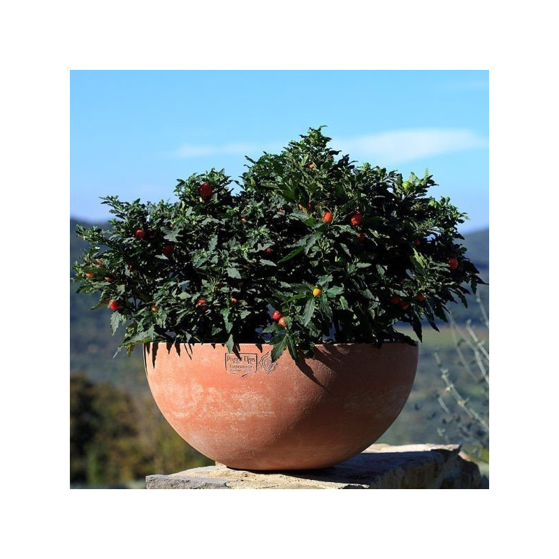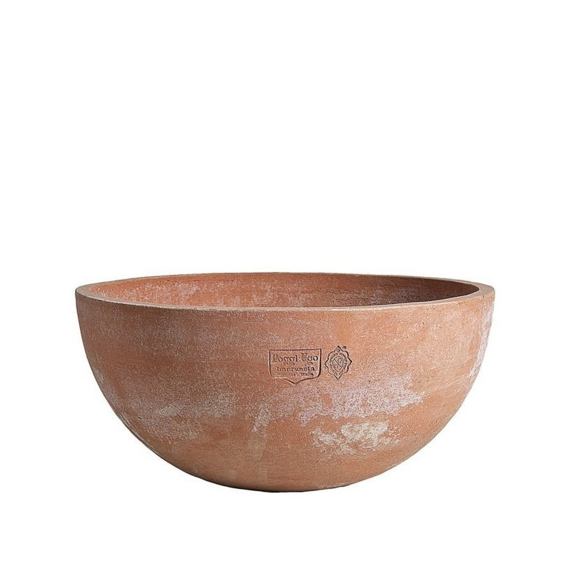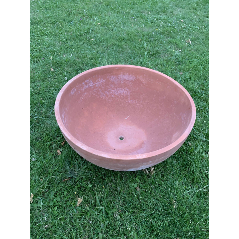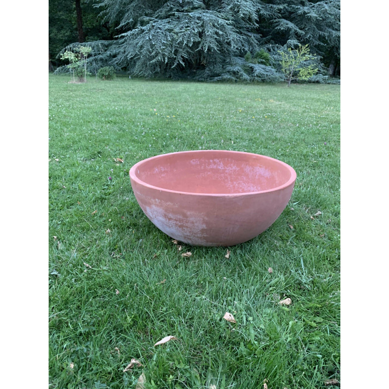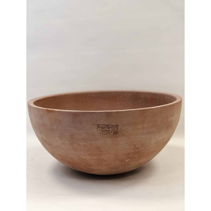 Ajoutez une touche d'originalité et une véritable personnalité à votre extérieur grâce à cette vasque Mama. Cette vasque en terre cuite pour le jardin est fabriqué à Impruneta, petit village non loin de Florence, en Italie, reconnu pour la qualité et la résistance des vases en terre cuite qui y sont fabriqués. Cette terre cuite pour l'extérieur peut résister à -30 °C, vous pourrez donc laisser la vasque dehors en hiver. Au contraire, lors de fortes chaleurs, cette vasque garde la terre aérée et humide pour protéger les racines. De plus, ce produit a été fabriqué à la main selon un savoir-faire artisanal et local par Poggi Ugo, une entreprise reconnue pour la robustesse et le soin apporté à la fabrication de ses produits. Cette vasque de jardin ronde en forme de coupe offre un design innovant qui saura apporter une touche de modernité à votre jardin ou votre terrasse ! Conçue aussi bien pour les plantes décoratives que pour les plantes aromatiques, ce bac en terre cuite à la forme galbée apportera une véritable personnalité à votre jardin.