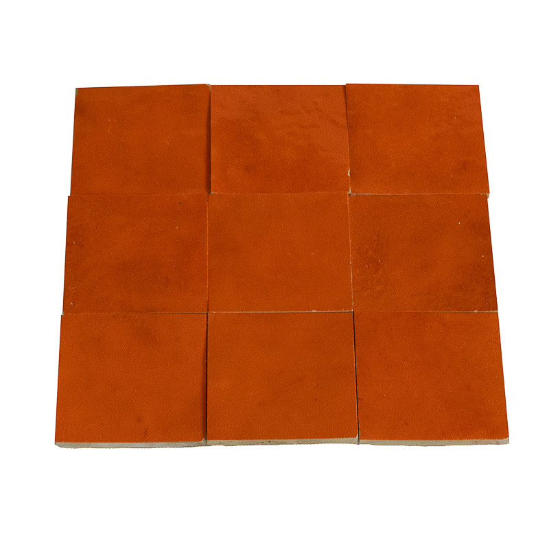 Notre zellige orange se caractérise par sa variabilité de forme et de dimension ainsi que par sa tonalité orange légèrement nuancée. Chaque carreau de zellige est taillé à la main, ce qui en fait un produit unique. Leur couleur nommée “orange pétillant”, un orange plutôt vif et profond, leur confère d’ailleurs une certaine chaleur que ces zelliges retransmettent instantanément à votre espace. Que vous souhaitiez créer un mur d’accent saisissant ou ajouter une touche de couleur à votre cuisine ou salle de bain, nos zelliges orange sont le choix idéal. En effet, vous pouvez poser nos zelliges oranges sur un plan de vasque ou sur une paroi de douche dans votre salle de bain ou en carreaux de faïence dans votre cuisine afin d’y apporter du caractère et de la convivialité. Nous vous invitons également à découvrir notre gamme de zelliges rouges et de zelliges roses, idéals, eux aussi, pour apporter du peps à votre intérieur. Le zellige peut aussi être posé en extérieur. Il est imperméable et se nettoie très facilement, sans précaution particulière, grâce à sa couche émaillée. C’est d’ailleurs sa couche émaillée qui en fait aussi un choix pratique pour les cuisines puisqu’il en devient imperméable aux projections de graisses causées par les cuissons.Les variations de nos zelliges orange
