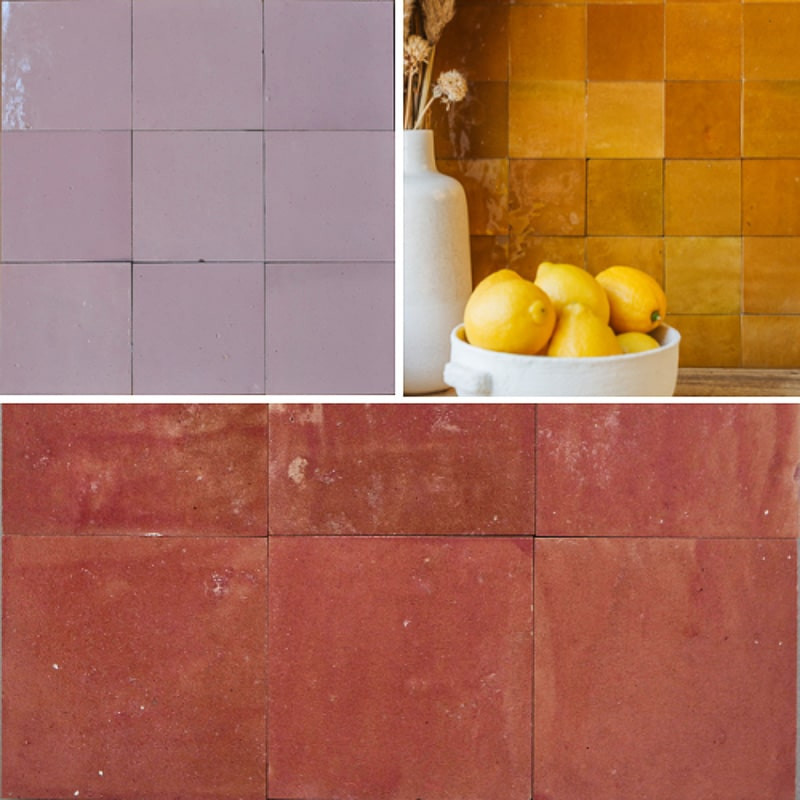 Nos zelliges roses sont disponibles dans les variations de couleurs suivantes :- Zellige rose parme