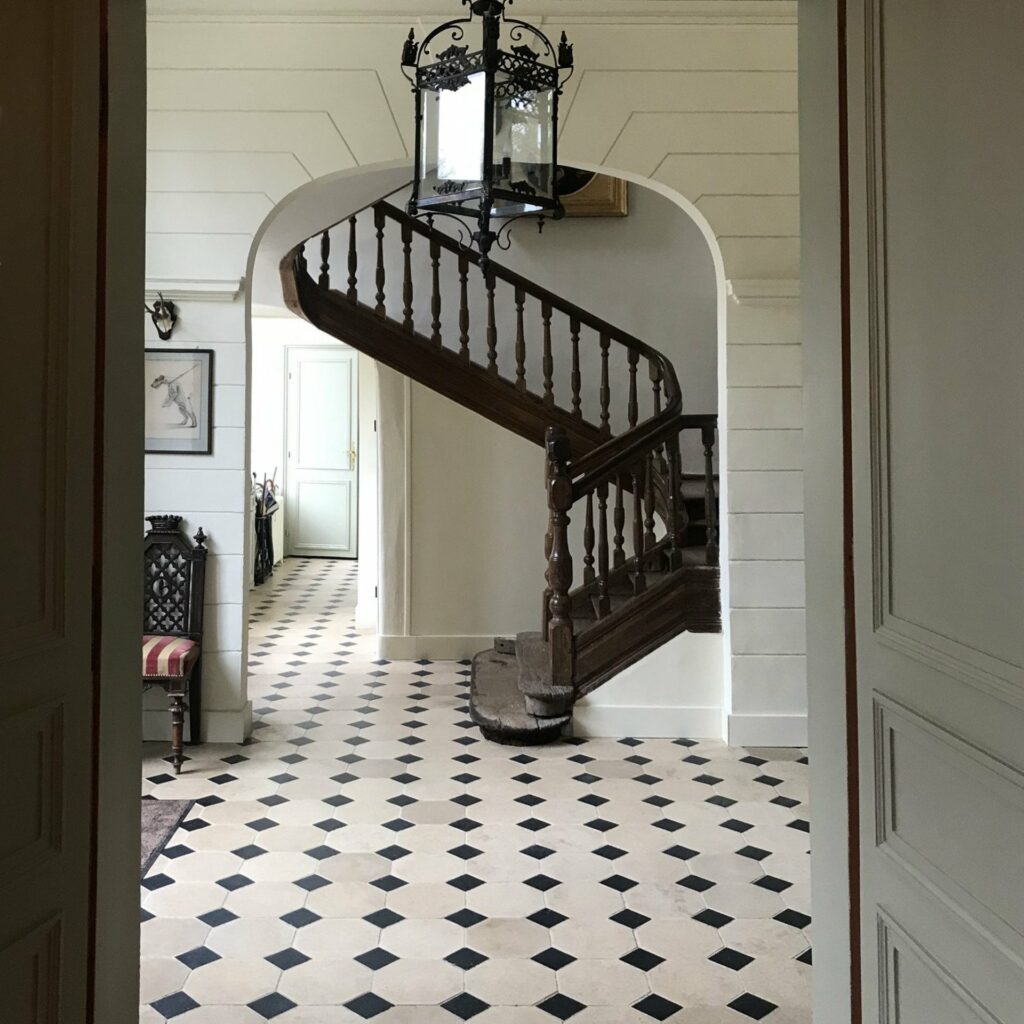 Le choix de ce Dallage à cabochons en pierre de la Nièvre brossée apparait comme une évidence pour ce lieu d'exception. Ce dallage réalisé sur mesure en France possède une finition brossée qui permet d'obtenir un authentique rendu ancien. Luminosité et cachet assurés avec ce dallage à cabochons !