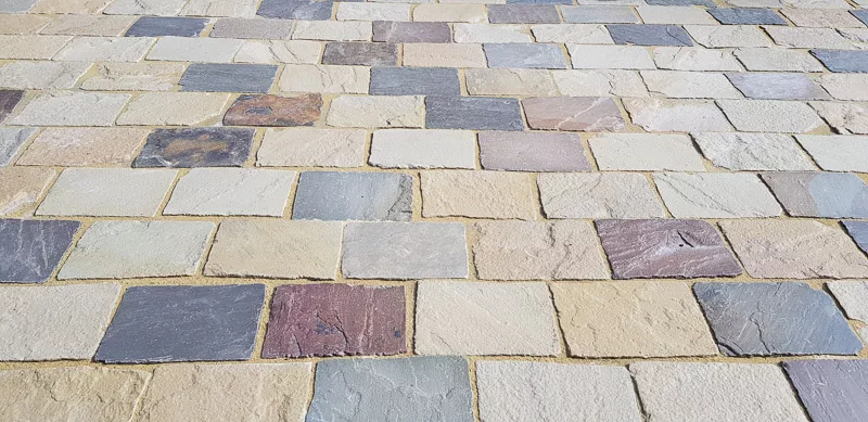 Nous avons mélangé des pavés grès multicolore et des pavés grès beige afin d'obtenir un joli panachage.